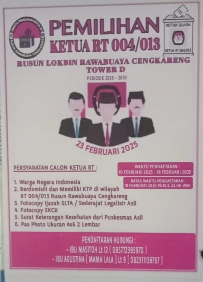 ACTUALNEWS.ID, Jakarta – Pemilihan ketua Rt, Rw 013 kelurahan Rawa Buaya, Cengkareng, Jakarta Barat serempak berjalan hari ini. Menurut Sukirno selaku karateker sekertaris rw yang juga ketua panitia pemilihan menuturkan bahwa ada 5 rt akan diremajakan yaitu rt 01, 02, 03, 04 dan 05 dan semoga berjalan demokratis sesuai dengan mekanisme Pergub no 22/2022.