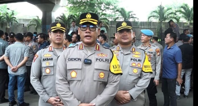 “Hari ini kami Polres Metro Jakarta Utara mengerahkan 637 personil di beberapa titik, untuk melaksanakan pengamanan dan mengawal aksi buruh yang dilakukan oleh saudara-saudara kita rekan-rekan Serikat Pekerja dan para penggiat pekerja,” kata Gidion.