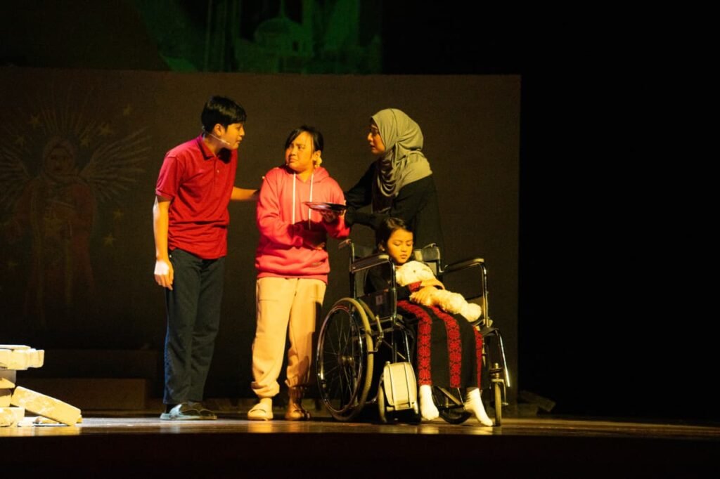 Mengangkat kisah kemanusiaan di Gaza, pementasan ini menghadirkan perpaduan monolog emosional, koreografi teatrikal yang simbolik, tata cahaya yang dramatis, serta musik yang menyayat hati. Panggung TIM berubah menjadi ruang refleksi kolektif tempat penonton tidak hanya menyaksikan, tetapi ikut merasakan luka dan harapan.