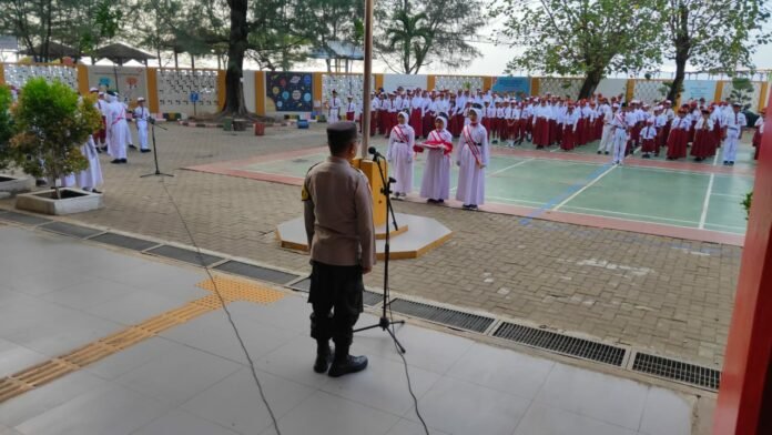 Aipda Masito Menyampaikan Pesan Penting pada Upacara Bendera di SDN 01 PG Pulau Untung Jawa