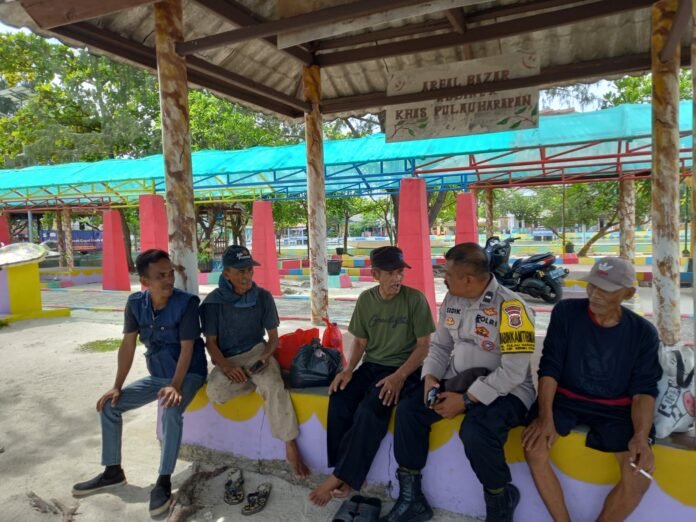 ACTUALNEWS ID, Jakarta,-Bhabinkamtibmas Pulau Harapan, Polsek Kepulauan Seribu Utara, Polres Kepulauan Seribu, Aipda Sidik melaksanakan giat sambang warga di RPTRA Nyiur Melambai di Pulau Harapan Kepulauan Seribu Utara, Senin (06/02/2023).
