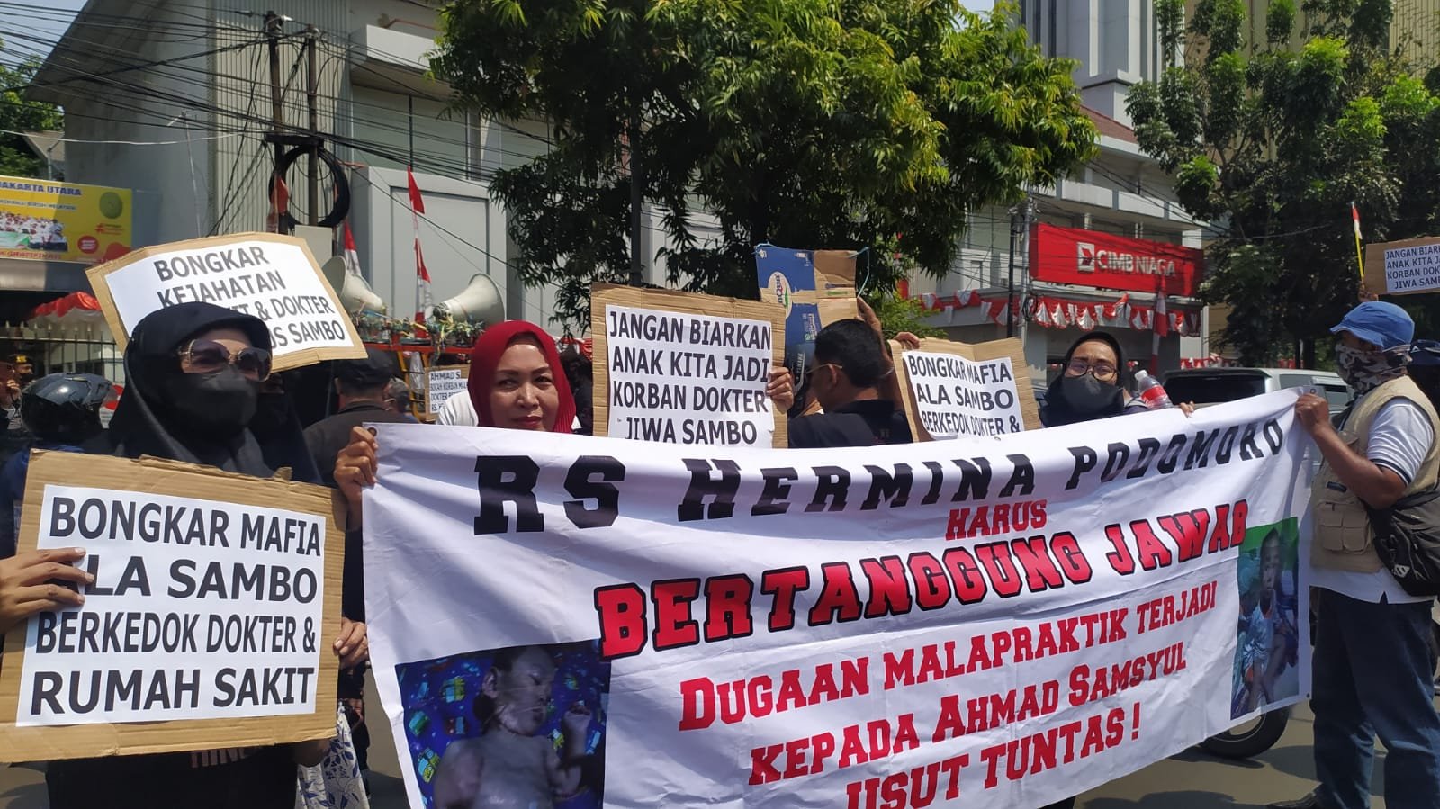 “Kita datang ke Pengadilan Jakarta Utara ini untuk mengawal sampai tuntas sidang gugatan dugaan Malpraktek R.S. Hermina Podomoro terhadap adinda Ahmad Samsul,” kata pemuda Utara, Alif, dari atas mobil aksi, Jl. Gajah Mada,.Jakarta Pusat, Selasa, (30/08/2022).