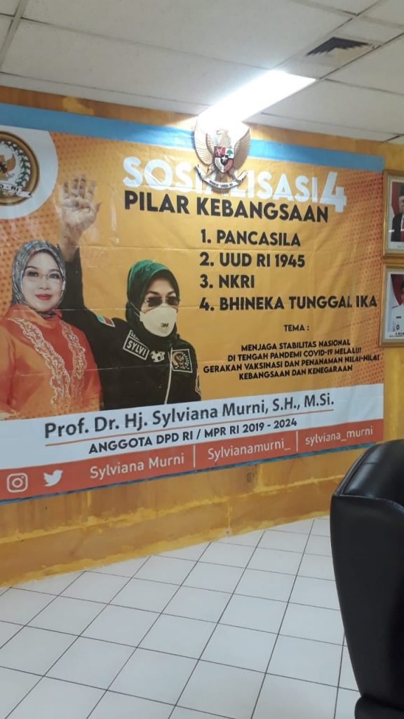 ACTUALNEWS.ID, Jakarta -Giat Sosialisasi 4 Pilar Kebangsaan yang terdiri dari Pancasila, UUD RI 1945,NKRI,Bhineka tunggal ika yang di hadiri oleh Prof. Dr. Hj. Sylviana Murni, S.H, M.Si. Anggota DPD RI/MPR RI 2019-2024 ( Ketua Komite Tiga DPD RI Dalam Hal Pembahasan Pansus Guru – Tenaga Pendidikan ).