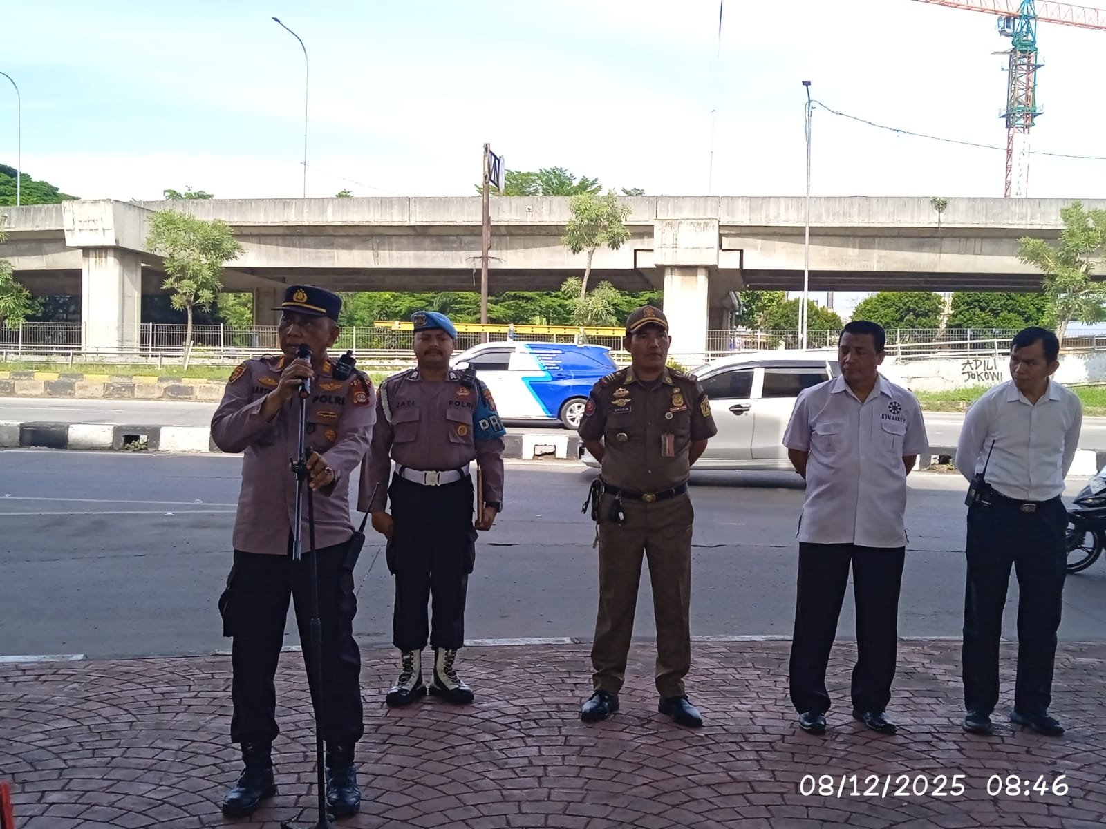 Apel dihadiri Kanit Intelkam Polsek Koja, IPTU Tri Agus Suharto, S.H., serta Panit Reskrim Polsek Koja, IPTU Ferfy, S.H., M.H.. Setelah apel selesai pada pukul 08.55 WIB, personel langsung ditempatkan di sejumlah titik untuk melakukan penyekatan dan pengamanan arus massa.