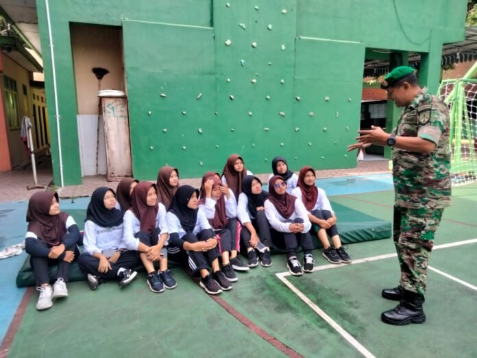 ACTUALNEWS.ID, Surakarta, Babinsa Kelurahan Tipes Koramil 03/Serengan Kodim 0735 Surakarta Serka Sarmin dan Sertu S.Anjasmoro melaksanakan Pembinaan Perlawanan Wilayah (Wanwil) dengan Siswa-Siswi SMAN 7 Surakarta Jl. Muh. Yamin no. 79 Kelurahan Tipes Kecamatan Serengan Kota Surakarta, Surakarta, pukul 10.00 Wib (24/03/2023)