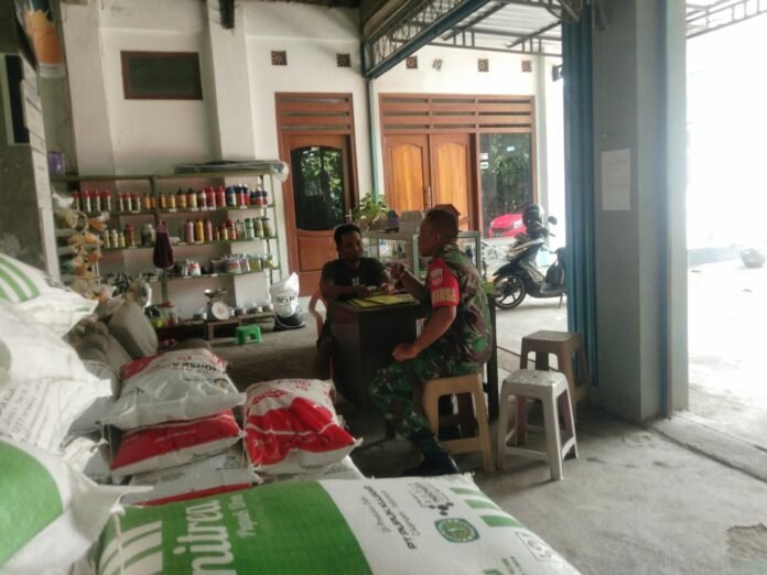 ACTUALNEWS.ID, Boyolali. Babinsa Koramil 12/Simo Kodim 0724/Boyolali Serda M Irfan melaksanakan komsos dengan Penjual Pupuk Bapak Mafrudin di Dukuh Tegalrayung Desa Pelem Kecamatan Simo Kabupaten Boyolali membicarakan tentang semakin mahalnya harga pupuk dan obat-obatan. ( 04/02/24)
