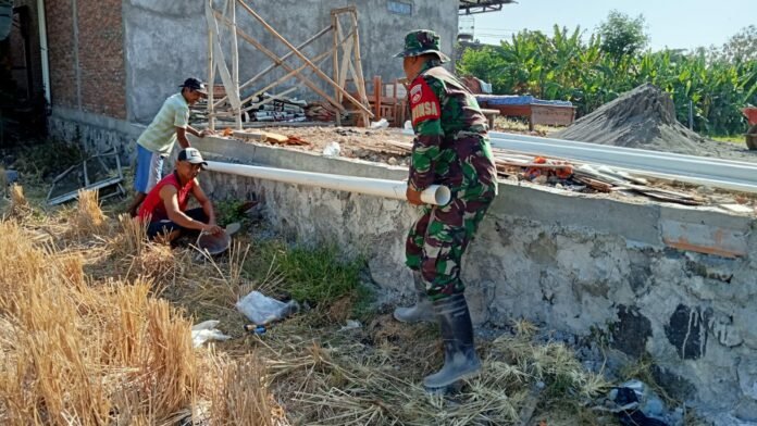 ACTUALNEWS.ID, Boyolali. Babinsa Koramil 11/Ngemplak Kodim 0724/Boyolali Koptu Riyanto membantu warga binaan untuk memasang pipa saluran air bersih di Dukuh Bentongan Desa Manggung Kecamatan Ngemplak Kabupaten Boyolali, Minggu ( 21/01/24).