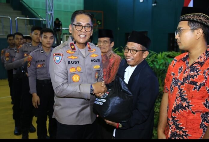 ACTUALNEWS ID, Surabaya – Operasi Nusantara Cooling System (NCS) Polri menggelar kegiatan Silaturahmi Kamtibmas dan Bakti Sosial di Gedung Sport Center, UIN Sunan Ampel, Kota Surabaya, Jawa Timur, Kamis (8/8/2024). Sebanyak 5.400 paket sembako dibagikan kepada masyarakat di beberapa polres yang berada di wilayah Polda Jatim.