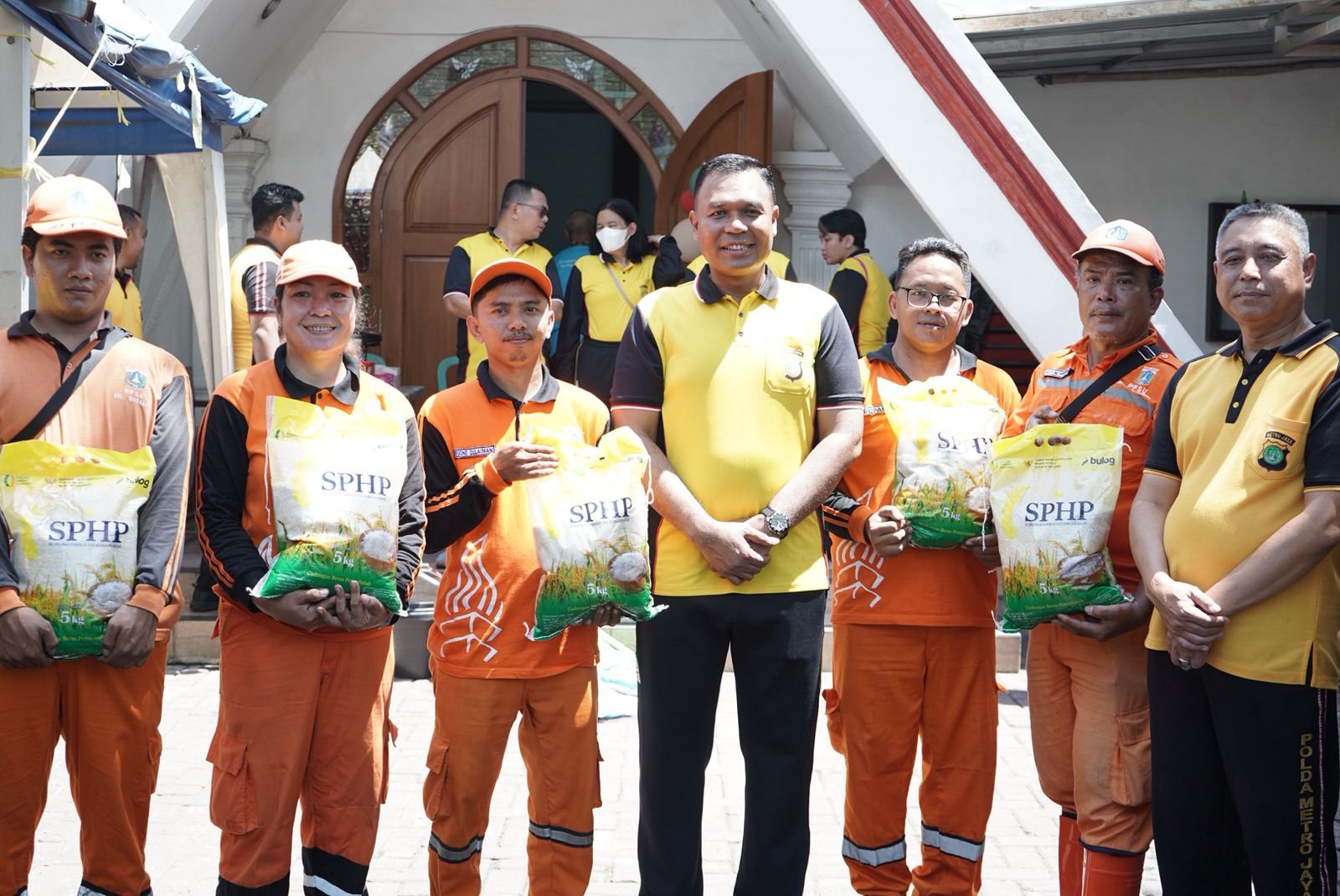 Selain kerja bakti, kepolisian juga menyalurkan bantuan sosial berupa alat kebersihan dan beras 5 kilogram untuk petugas PPSU. Bantuan tersebut diterima langsung oleh perwakilan gereja dan petugas kebersihan lingkungan.