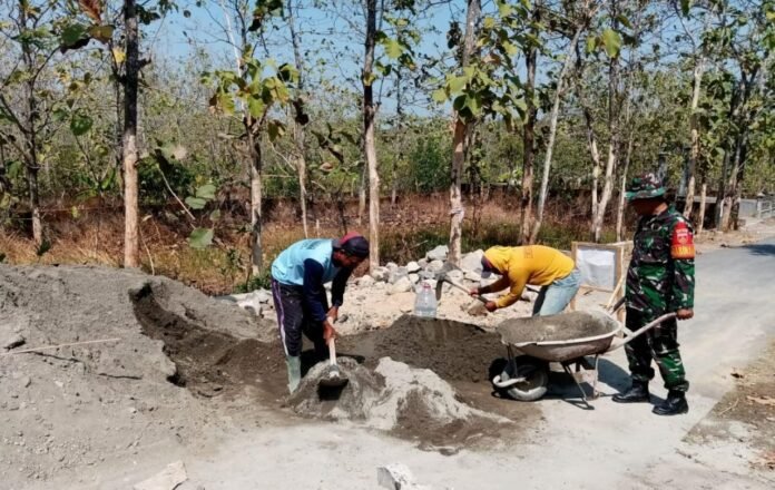 ACTUALNEWS.ID, Sragen, Berbagai upaya dilakukan Serda Supriyanto Babinsa Ds.Kalimacan Koramil 18/Kalijambe Kodim 0725/Sragen untuk mewujudkan ketahanan pangan masyarakat salah satunya melalui pembangunan infrastruktur pertanian seperti pembangunan talud badan irigasi yang terletak di Dk.Malangan Rt.14 Ds.Kalimacan Kec.Kalijambe, Jum’at ( 13/10/2023 )
