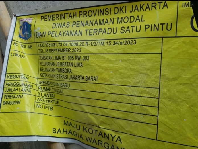 Menurut Kasie Citata Kecamatan Tambora, Kota Jakarta Barat Sujatmiko menjelaskan IMB (Ijin Mendirikan Bangunan) yang disetujui hanya batasan rumah lama sampai 3 lantai.