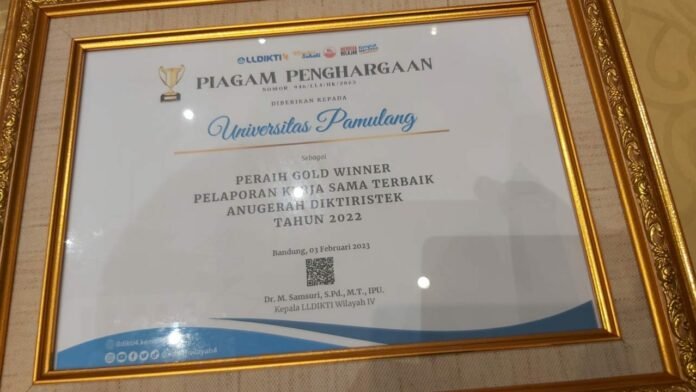 ACTUALNEWS.ID, Jakarta —Universitas Pamulang (Unpam) kembali menorehkan prestasi tingkat nasional penghargaan Gold Winner 1 kategori Pengelolaan Kerja Sama PTS (Perguruan Tinggi Swasta) se-Indonesia dalam ajang Anugerah Diktiristek 2022.