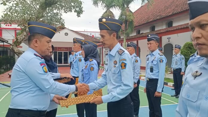 ACTUALNEWS.ID, Rangkasbitung,- Lapas kelas III Rangkasbitung Kanwil Kemenkumham Banten melaksanakan upacara penyematan kenaikan pangkat terhadap 8 (delapan) orang pegawai Lapas Rangkasbitung yang bertempat di lapangan Lapas Rangkasbitung, Kamis (30/03)