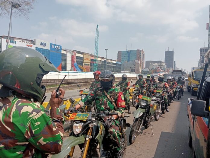 JAKARTA, Pada hari Senin, 1 September 2025, pukul 11.00 WIB, jajaran TNI Angkatan Darat menggelar patroli siang hari di jantung ibu kota. Patroli ini dipimpin oleh Letkol Inf Agung Ari Wibowo, Danyonif 318, dengan melibatkan kekuatan 100 prajurit Yonif 318, 4 personel Pomdam, 15 motoris, serta dukungan kendaraan taktis Maung (4 unit), truk (5 unit), ambulans (3 unit), dan kendaraan berpengeras suara.