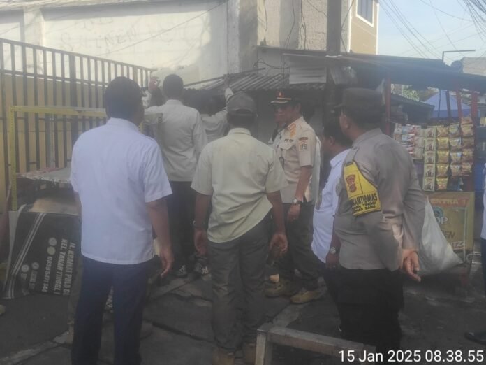 ACTUALNEWS.ID, Jakarta – Bhabinkamtibmas Aiptu Fahri bersama Tiga Pilar Kelurahan Tanah Tinggi melaksanakan kegiatan penertiban Pedagang Kaki Lima (PKL) dan parkir liar di Sepanjang Jalan Kramat Pulo Gundul dari wilayah RW 10 sampai dengan RW 08 Kelurahan Tanah Tinggi, Kecamatan Johar Baru Jakarta Pusat. Kamis (16/01/2025).