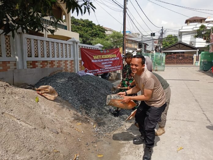 ACTUALNEWS.ID, Jakarta – Sebagai bentuk kepedulian dan kebersamaan dengan warga, Bhabinkamtibmas Polsek Kelapa Gading, Bripka Ery Wijaya, turut serta membantu pengecoran halaman Masjid Al-Amin yang terletak di RW 05, Kelurahan Kelapa Gading Timur, Kecamatan Kelapa Gading, Jakarta Utara, Kamis (20/2/2025).