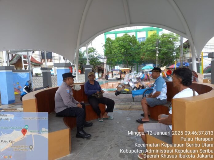 ACTUALNEWS.ID, Jakarta – Dalam upaya mempererat hubungan dengan masyarakat dan menjaga situasi keamanan yang kondusif, Bhabinkamtibmas Pulau Harapan, Polres Kepulauan Seribu, Aipda Sidik, melaksanakan kegiatan sambang warga pada Minggu (12/01/2025).