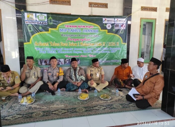 ACTUALNEWS.ID, Jakarta – Bhabinkamtibmas Pulau Kelapa, Polres Kepulauan Seribu, Aipda Sahrizal, menghadiri kegiatan santunan anak yatim piatu di Yayasan Miftahul Jannah, Pulau Kelapa, Kepulauan Seribu Utara. Acara yang berlangsung di Gedung Yayasan Yatim Piatu Miftahul Jannah ini diselenggarakan dalam rangka memperingati 10 Muharram, yang juga dikenal sebagai Hari Asyura.