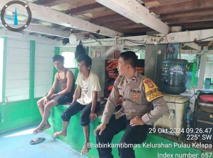 Bhabinkamtibmas Pulau Kelapa Sampaikan Himbauan Kamtibmas dan Waspada Cuaca Buruk kepada Nelayan