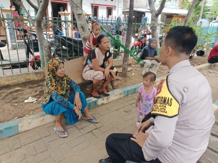 ACTUALNEWS.ID, Jakarta – Aipda Sahrizal, seorang Bhabinkamtibmas yang bertugas di Pulau Kelapa, Polres Kepulauan Seribu, melakukan sambang kepada para ibu di wilayah tersebut pada Rabu (28/02/2024). Dalam kunjungannya, Aipda Sahrizal menyampaikan sosialisasi tentang pencegahan stunting serta mengingatkan pentingnya untuk tidak percaya pada informasi palsu atau hoax.