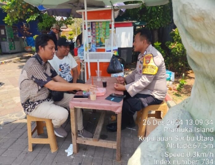 ACTUALNEWS.ID, Jakarta – Menjelang perayaan Natal dan Tahun Baru (Nataru), Bhabinkamtibmas Pulau Pramuka, Polres Kepulauan Seribu, Bripka Marwansyah, melaksanakan kegiatan sambang ke warga untuk menciptakan suasana aman dan nyaman bagi wisatawan, Jumat (27/12/2024). Dalam kegiatan tersebut, Bripka Marwansyah memberikan himbauan penting kepada masyarakat terkait keselamatan dan kewaspadaan.