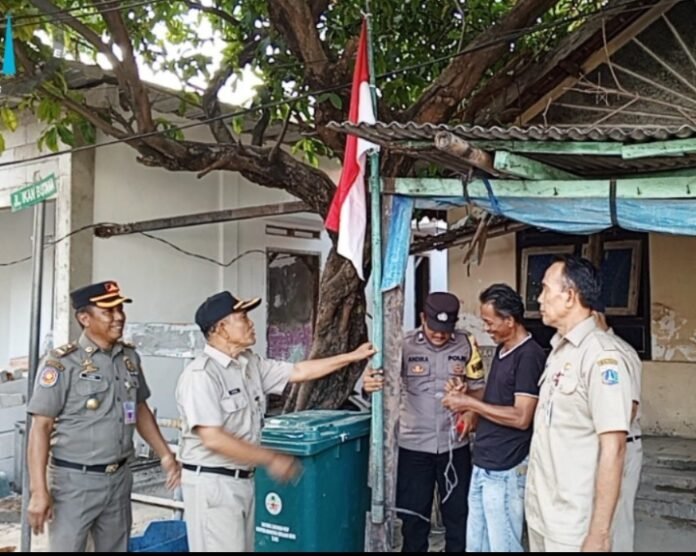 ACTUALNEWS.ID, Jakarta – Dalam rangka memperingati Hari Ulang Tahun (HUT) Republik Indonesia ke-79, Bhabinkamtibmas Pulau Tidung, Polres Kepulauan Seribu, Briptu Andika Fajar bersama Satpol PP Pulau Tidung melaksanakan kegiatan himbauan kepada masyarakat untuk memasang umbul-umbul dan bendera merah putih di depan rumah atau halaman masing-masing, Selasa (06/08/2024).