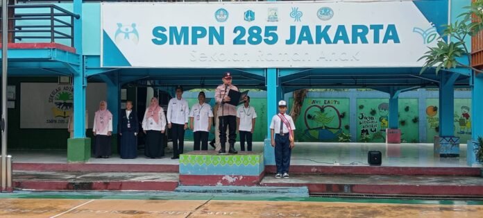 Bhabinkamtibmas Pulau Untung Jawa Jadi Pembina Upacara di SMPN 285 Jakarta, Tekankan Pentingnya Kejujuran dan Disiplin