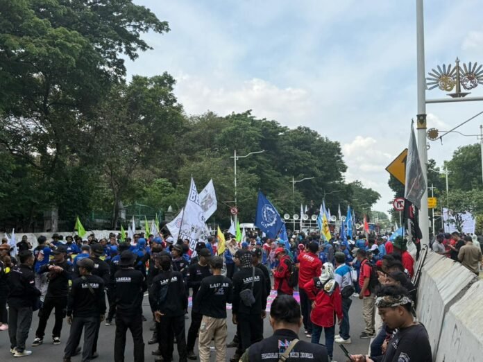 ACTUALNEWS.ID, Jakarta, 10 September 2025 – Brimob Polda Metro Jaya melaksanakan pengamanan terhadap aksi unjuk rasa yang digelar di kawasan Silang Monas Barat Daya pada Selasa siang. Sekitar 250 orang dari Serikat Pekerja, Serikat Buruh, dan komunitas ojek online turut serta dalam kegiatan tersebut.