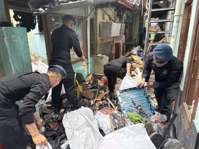 Brimob Polda Metro Jaya Bersama Warga Gelar Kerja Bakti Pasca Kebakaran di Kwitang