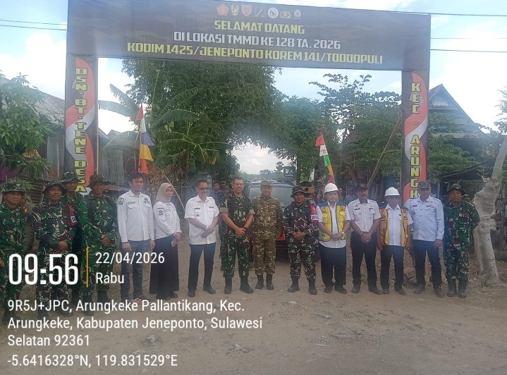 Program TMMD ke-128 ini dipusatkan di Desa Arungkeke Pallantikang, Kecamatan Arungkeke, dan akan berlangsung selama satu bulan, mulai tanggal 22 April hingga 21 Mei 2026. Kegiatan ini melibatkan sekitar 150 personel gabungan dari TNI, Polri, serta unsur terkait lainnya.