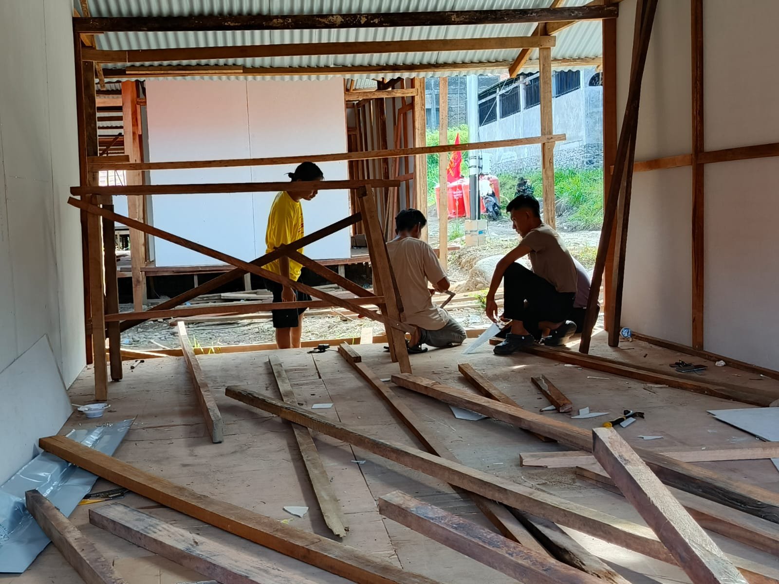 Berdasarkan perkembangan di lapangan, hingga saat ini pembangunan telah mencapai 47 unit. Progres pekerjaan meliputi pemasangan lantai papan dan pengerjaan struktur bangunan, yang terus dilakukan secara bertahap sesuai dengan perencanaan yang telah ditetapkan.