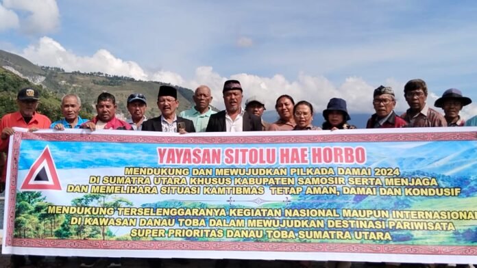 Saat deklarasi, Yayasan Sitolu Hae Horbo bersama puluhan masyarakat menyatakan siap mendukung dan mewujudkan Pilkada damai 2024 di Sumatera Utara khususnya Kabupaten Samosir, serta menjaga dan memelihara situasi Kamtibmas tetap aman, damai dan kondusif.