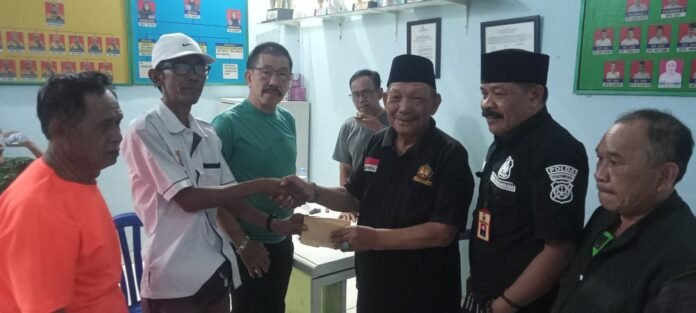 Ketua Citra Bhayangkara Kecamatan Tambora, Haji Entol Hasanudin S.sos bersama Ketua Subsektor 10.11 Krendang Mahpudin yang disapa Apuy bersama anggota Citra Bhayangkara Polsek Tambora memberikan bantuan kepada korban kebakaran yang diserah terimakan lewat Pengurus RW 02 Krendang, Mastur selaku Ketua RW 02.