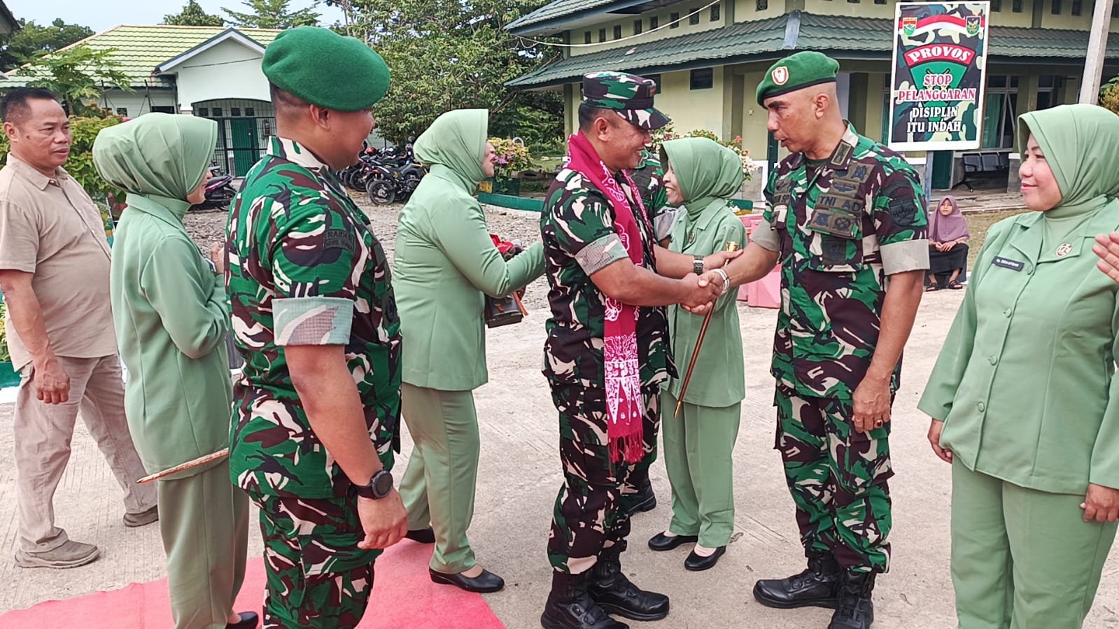 Kedatangan Danrem 041/Gamas beserta rombongan disambut langsung oleh Dandim 0428/Mukomuko, Letkol Inf Yokki Firmansyah, beserta jajaran. Acara penyambutan diawali dengan laporan dari Dandim, hormat jajar, dan pengalungan selendang oleh perwakilan prajurit.