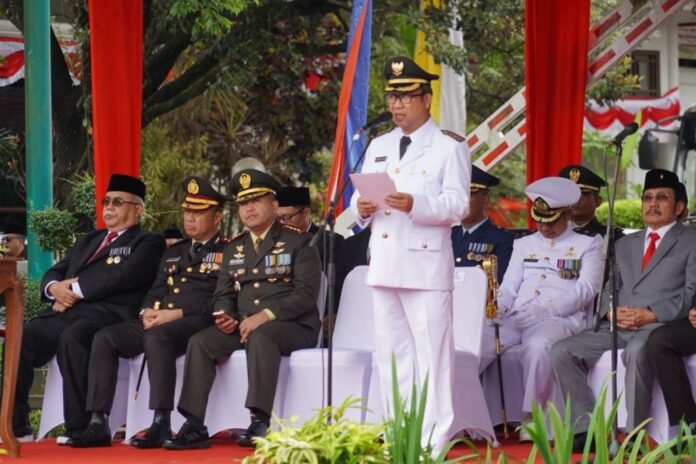 ACTUALNEWS.ID, Purwokerto – Komandan Korem 071/Wijayakusuma Kolonel Czi Mohammad Andhy Kusuma, S.Sos., M.M., dengan didampingi Ketua Persit Kartika Chandra Kirana Koorcab Rem 071 PD IV/Diponegoro Ny. Diah Mohammad Andhy Kusuma, ikuti upacara detik-detik Proklamasi Kemerdekaan Republik Indonesia Ke-78 di Alun-alun Purwokerto Pemkab Banyumas, Purwokerto.