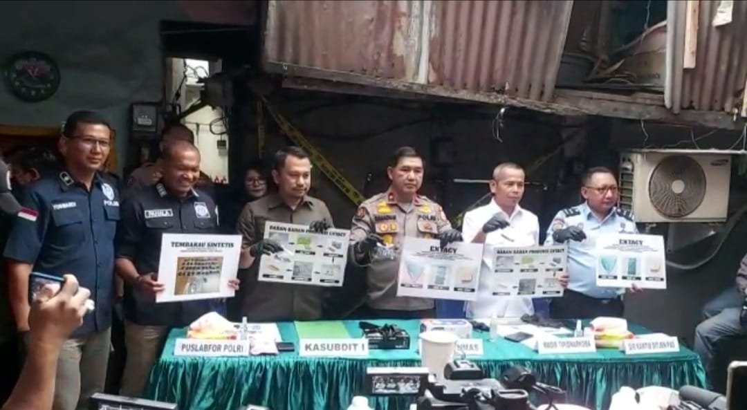 ACTUALNEWS.ID Jakarta,-Bareskrim Polri membongkar dapur produksi ekstasi di permukiman padat penduduk di Jakarta Pusat (Jakpus). Lokasi tersebut dipilih agar sulit terpantau aparat penegak hukum.