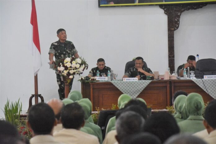 ACTUALNEWS.ID Banyumas – Pangdam IV/Diponegoro Mayjen TNI Widi Prasetijono dalam kunjungan kerjanya di Makorem 071/Wijayakusuma berpesan kepada segenap prajurit dan PNS Korem 071/Wijayakusuma agar melaksanakan tugas pokoknya sebaik mungkin dengan selalu memegang teguh Sapta Marga, Sumpah Prajurit dan Delapan Wajib TNI sebagai prajurit TNI serta kode etik Panca Prasetya Korpri bagi PNS Korem 071/Wijayakusuma. Rabu (15/2/2023).