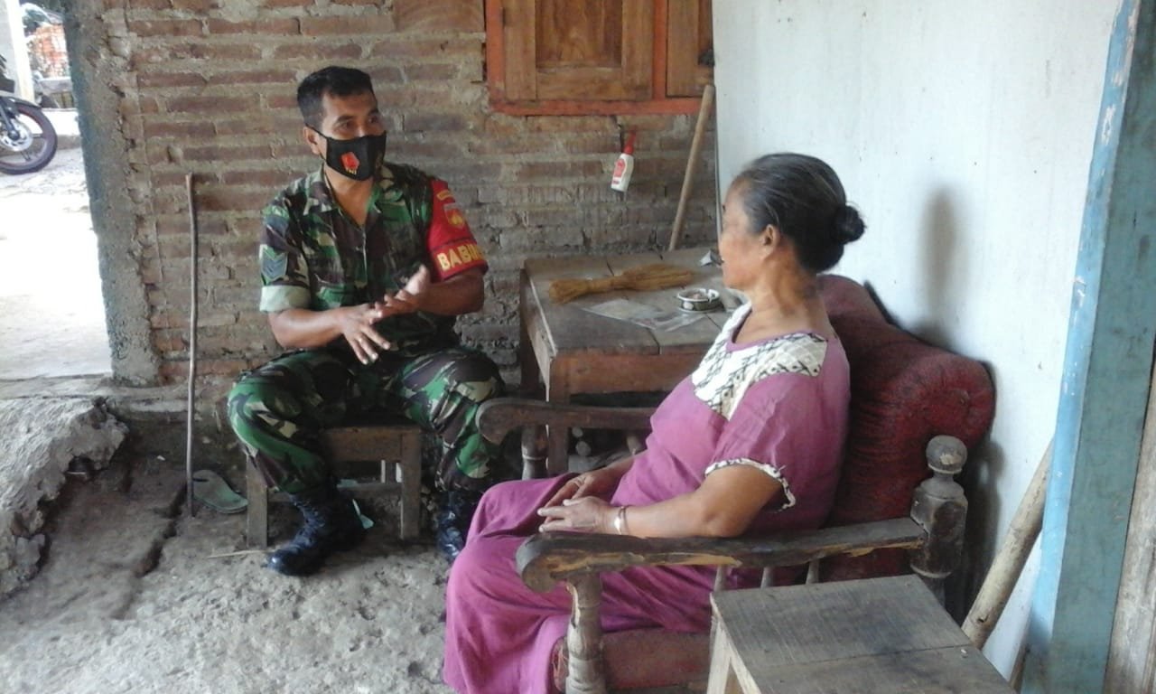 “ Saya selaku Babinsa tak bosan-bosannya menghimbau Patuhi 5 M (Memakai Masker, Menjaga Jarak, Mencuci tangan, Menghindari kerumunan dan Mengurangi mobilitas) laksanakan himbauan pemerintah, kita akan terhindar dari terpaparnya Covid 19” Tutur Babinsa.