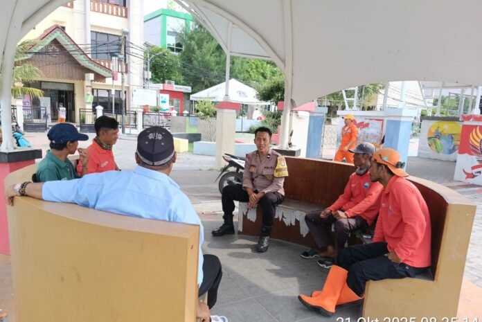 Dekat dengan Warga, Bhabinkamtibmas Pulau Kelapa Ajak Masyarakat Jaga Kamtibmas dan Peduli Lingkungan