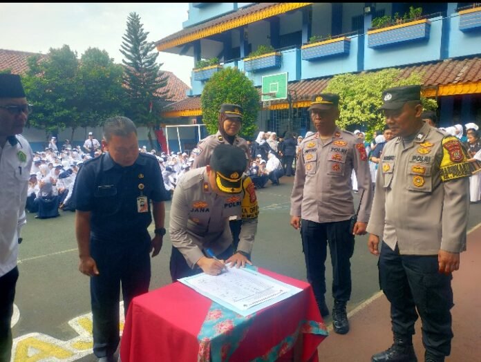 Setelah amanat Kapolsek, acara dilanjutkan dengan penandatanganan MoU sebagai simbol komitmen bersama untuk menciptakan lingkungan sekolah yang aman dan kondusif.