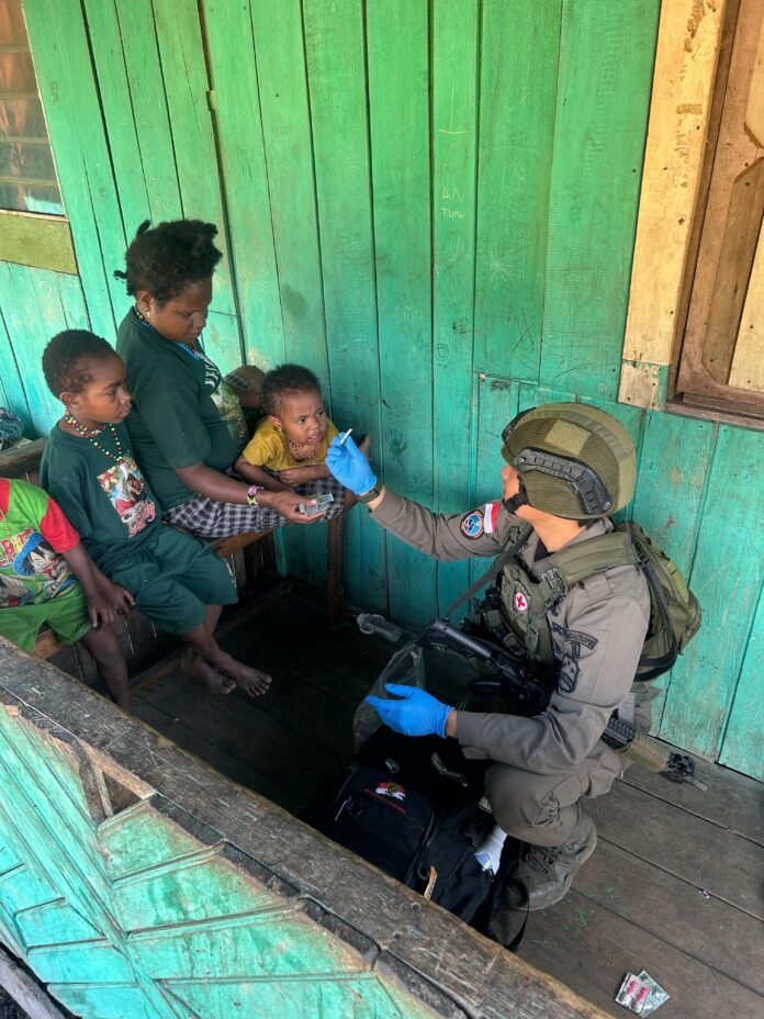 ACTUALNEWS.ID, SINAK — Di tengah pelaksanaan tugas pengamanan di wilayah Sinak, Kabupaten Puncak, personel Brimob Polri tetap mengedepankan nilai-nilai kemanusiaan dengan memberikan pelayanan kesehatan kepada masyarakat. Kehadiran Brimob di tengah warga tidak hanya dirasakan sebagai penjaga stabilitas wilayah, tetapi juga sebagai penolong bagi masyarakat yang membutuhkan perhatian medis. (20/01/26)