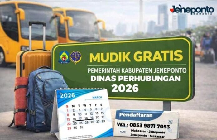 Actual news.id Jeneponto, 16 Maret 2026 secara resmi,Dinas Perhubungan Kabupaten Jeneponto menyelenggarakan kegiatan Mudik Gratis bagi masyarakat dengan rute Makassar – Jeneponto dan Jeneponto – Makassar (PP) yang dilaksanakan mulai 16 hingga 19 Maret 2026.