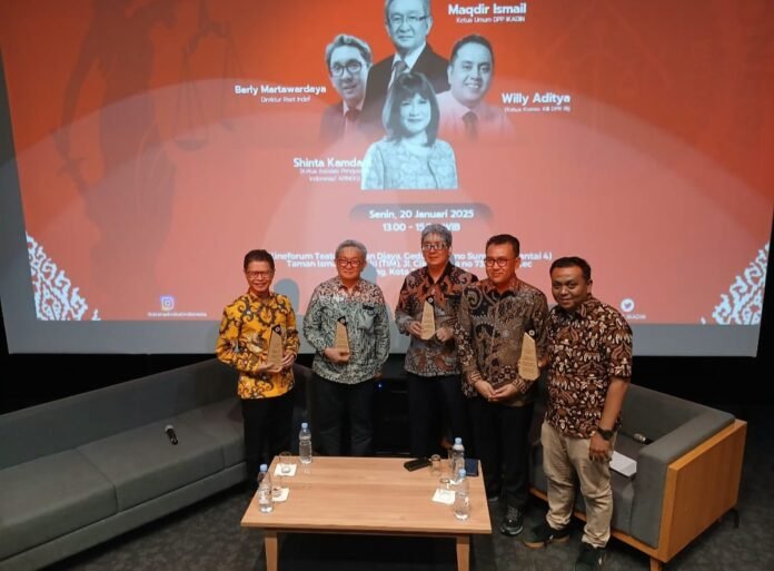 ACTUALNEWS.ID, Jakarta, Ikatan Advokat Indonesia (IKADIN) menggelar diskusi bertajuk “Outlook Hukum dan Ekonomi 2025: Hukum Yes, Pertumbuhan Ekonomi Yes! Mungkinkah?” di Taman Ismail Marzuki, Jakarta, pada Senin, 20 Januari 2025. Acara ini dihadiri oleh berbagai narasumber yang membahas peran hukum dan ekonomi dalam pembangunan nasional.