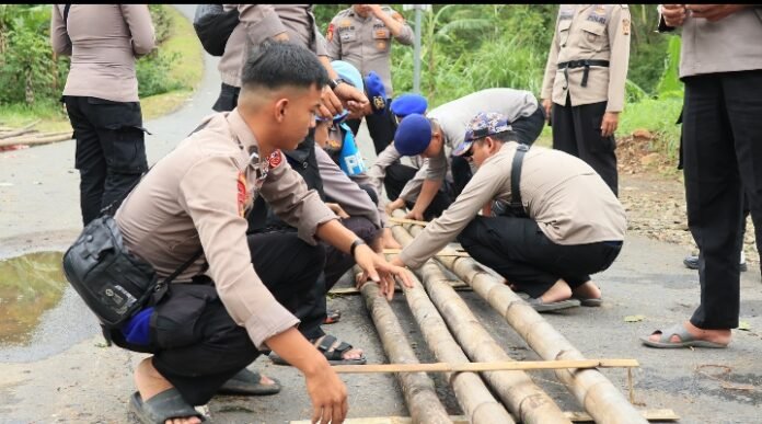Ditpolairud polda Jabar dan Satpolairud polres Sukabumi bangun jembatan darurat untuk warga