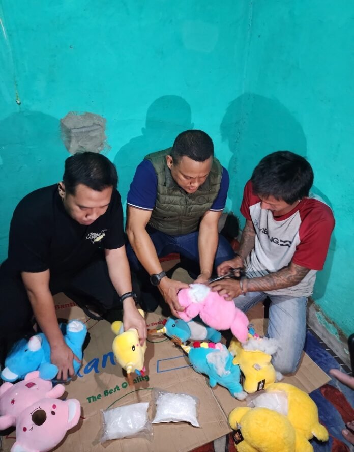 Tim menyita barang bukti berupa narkotika jenis shabu sebanyak 12 paket bungkus plastik ukuran besar (berat 6 Kg) yang berada di dalam 8 boneka berikut alat komunikasi 1 unit Handphone.