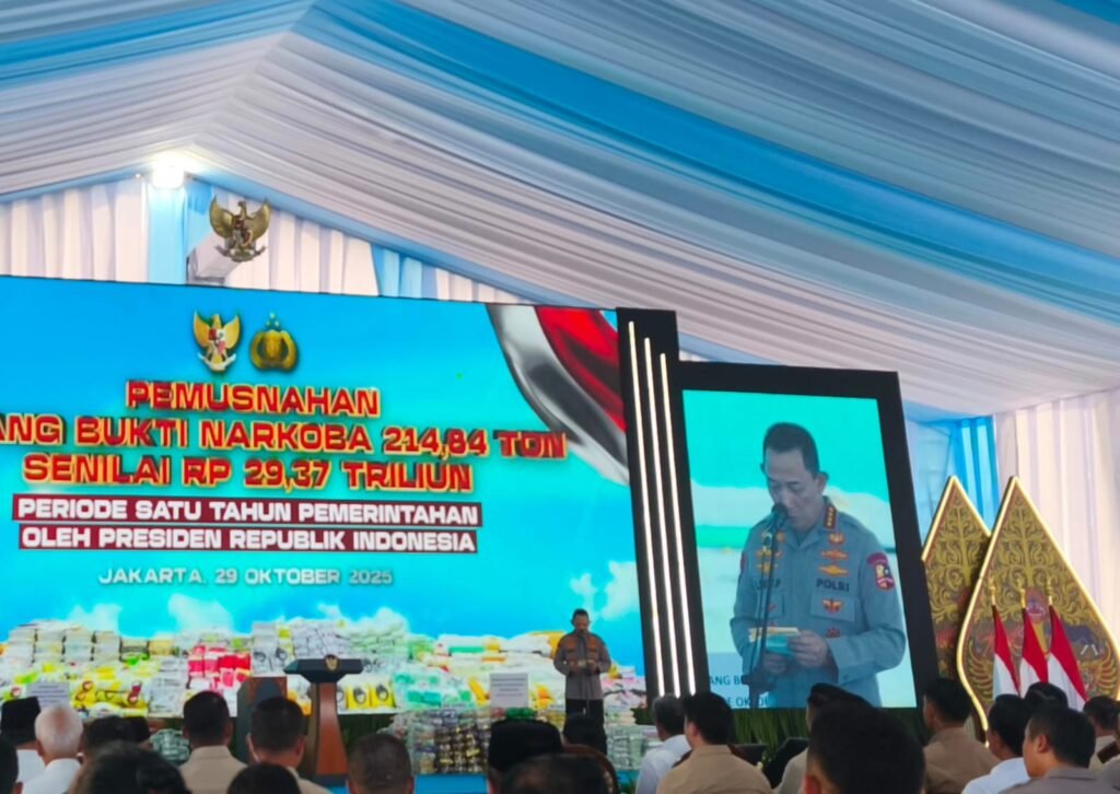 ACTUALNEWS.ID Jakarta Pada hari ini Rabu, 29 Oktober 2025 bertempat di lapangan Bhayangkara Mabes Polri, dilakukan pemusnahan barang bukti narkoba seberat 213,84 ton senilai 29,37 triliun.