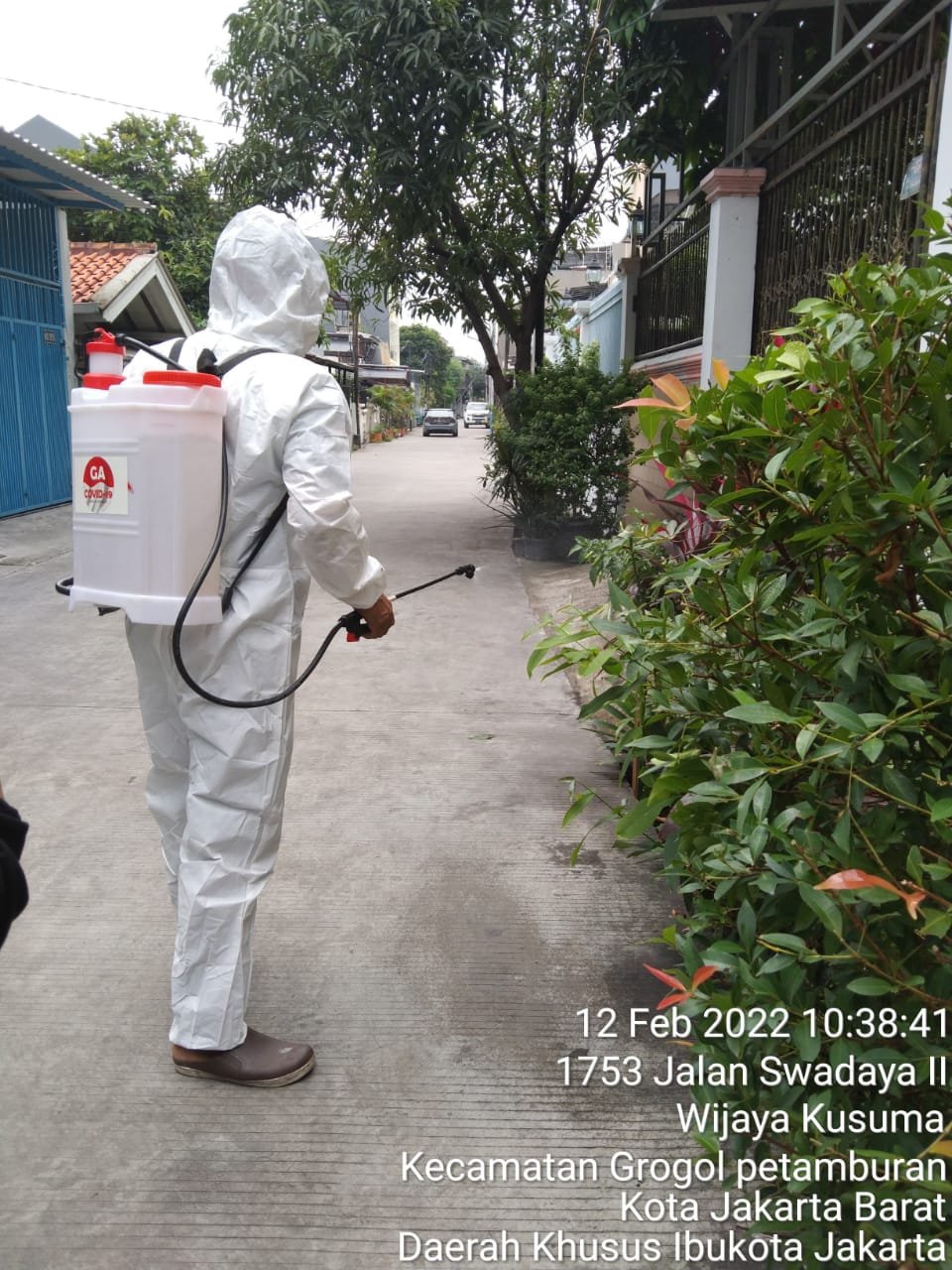 Penyemprotan ini berkerjasama antara pengurus Rt dengan GA (Gerakan Anti) Covid 19 Kota Jakarta Barat.