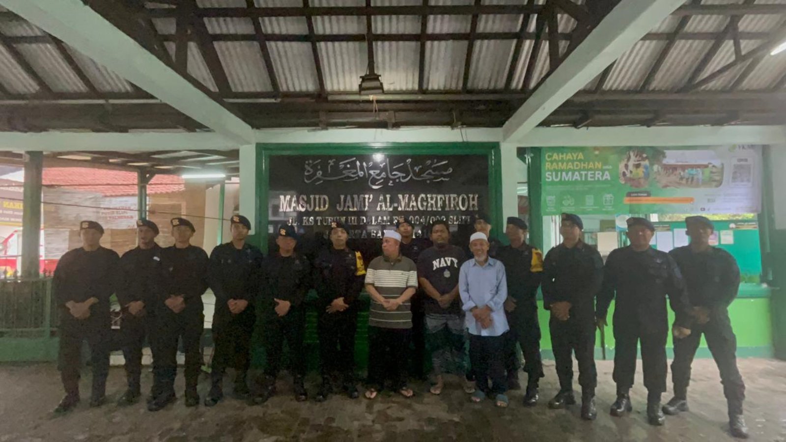Dipimpin AKP Mujiadi, personel Detasemen Gegana tiba di lokasi pada pagi hari dan terlebih dahulu berkoordinasi dengan Ketua Dewan Kemakmuran Masjid (DKM) Masjid Al-Magfiroh, Ustaz Sutisna. Setelah itu kegiatan dilanjutkan dengan kerja bakti membersihkan area masjid bersama pengurus setempat.