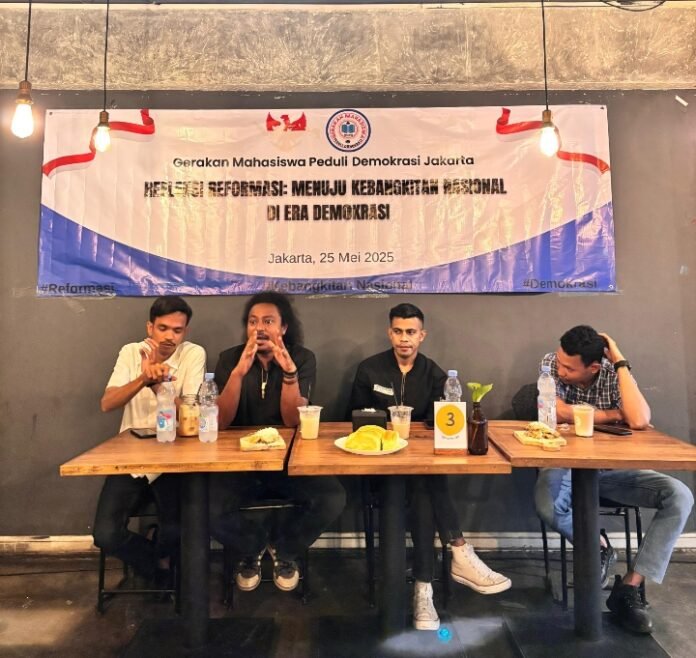 ACTUALNEWS ID, Jakarta, — Sebagai bagian dari refleksi dua dekade lebih perjalanan reformasi, Gerakan Mahasiswa Peduli Demokrasi (GMPD) Jakarta memprakarsai sebuah Focus Group Discussion (FGD) bertema “Refleksi Reformasi: Menuju Kebangkitan Nasional di Era Demokrasi” pada Minggu (25/5) di Restoran Putra Sriwijaya, Graha IJW, Jakarta Pusat.