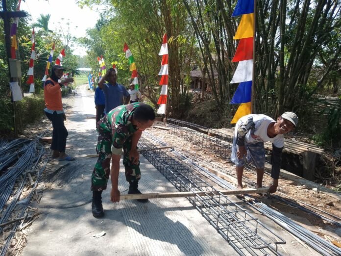 Babinsa Serda Wahyu mengatakan Kegiatan karya bhakti ini menjadi bentuk kepedulian Babinsa untuk menjalin kemanunggalan TNI Rakyat hingga membaur dan menyatu diberbagai bidang termasuk pada bidang karya bhakti. Dengan maksud untuk pembangunan fasilitas umum.